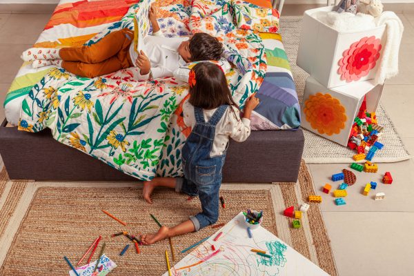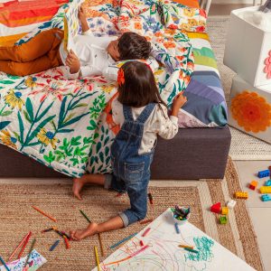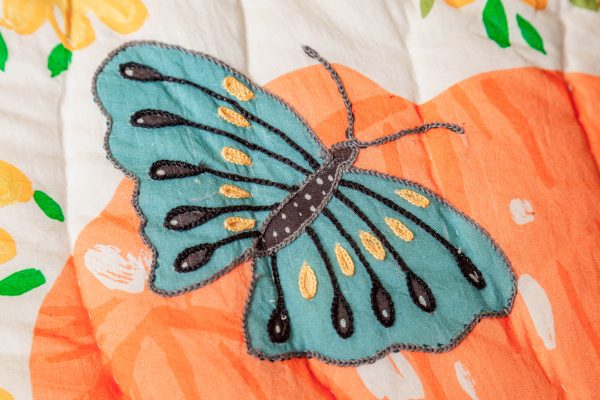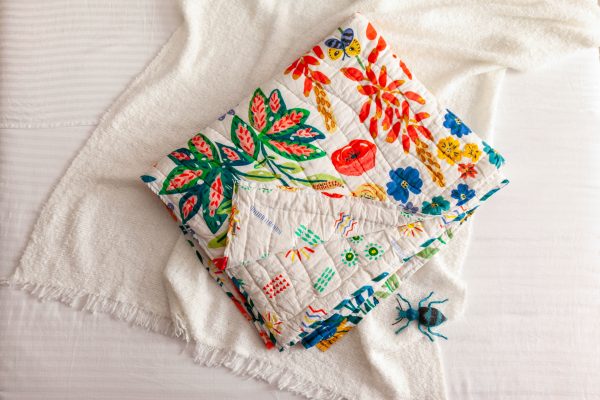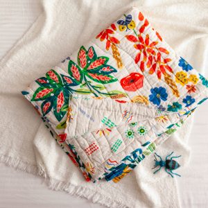 Digital print on 100% cotton fabric with 100% cotton filling. Reversible.
