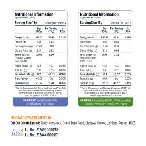Dehydrated Fruits Snacks made with Apple pulp and dried Blueberry powder without refined sugar, artificial colors and preservative
