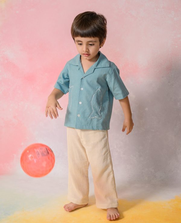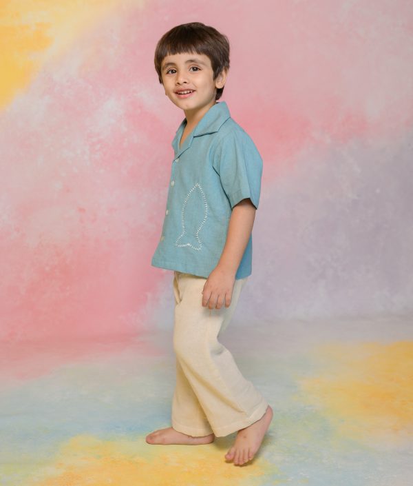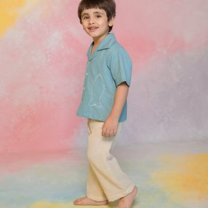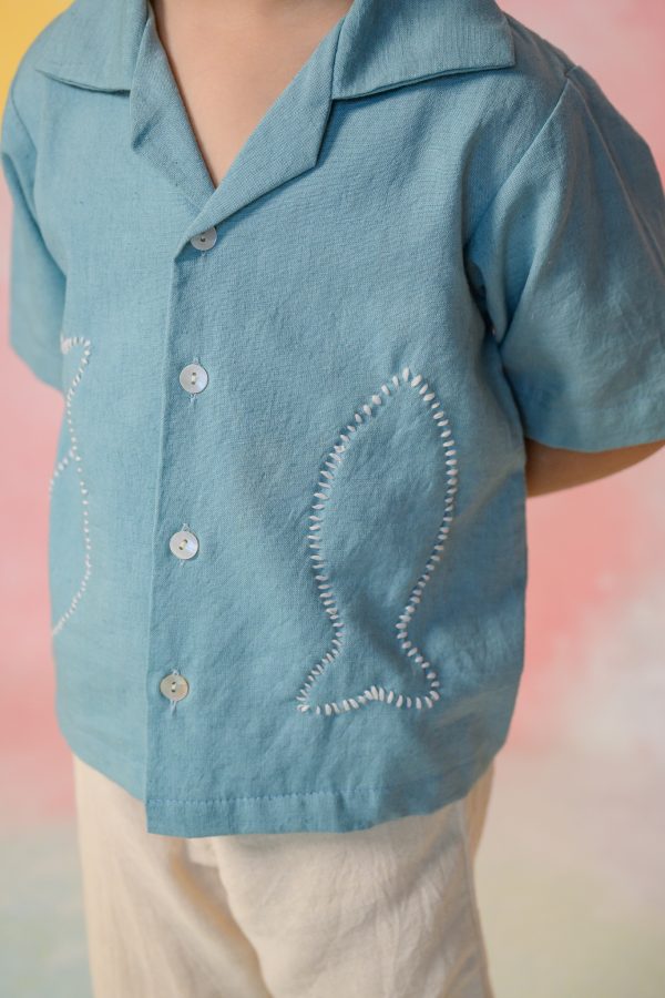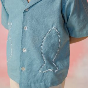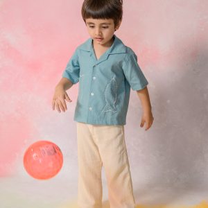 Crafted in soft cotton, the fabric feels breathable and gentle on the skin, making it perfect for warm, easygoing days. The delicate fish embroidery adds a playful yet minimal detail, bringing in a hint of seaside storytelling. Designed in an effortless loose fit, the silhouette allows for all-day comfort and free movement — ideal for everything from slow vacations to everyday outings.Blending casual ease with vacation-ready style, the Aqua Fish Shirt is made for little moments that feel like a getaway.