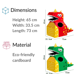 I bought the D’bebé Dino Costume for my 5-year-old and we both loved it! It was super easy to assemble with no mess or tools required. My child had a blast decorating and pretending to be a dinosaur. The cardboard is lightweight, eco-friendly, and very comfortable to wear. It’s been perfect for creative play, parties, and screen-free fun. Highly recommend for any little dinosaur fan!
