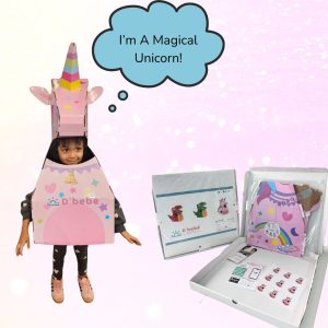 I bought the red Dino and unicorn costumes for my child and her friend’s birthday party. I wanted something unique, and when my child wore it, all the other kids loved it—everyone wanted one! This costume is suitable for both boys and girls, budget-friendly, and of great quality. My child enjoyed playing with it as soon as she came home from school. Thanks to D’bebe for making such fun costumes with pre-cut pieces—easy to assemble, tape included, and very nicely packaged. Highly recommended.
