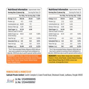 Sore Throat Gummies : Fruits Gummies made with Honey, Orange Juice Conc., Turmeric Powder, Black Pepper Powder, Ginger Powder, Natural Orange Flavour and Orange Extract without refined sugar, artificial colors and preservatives