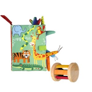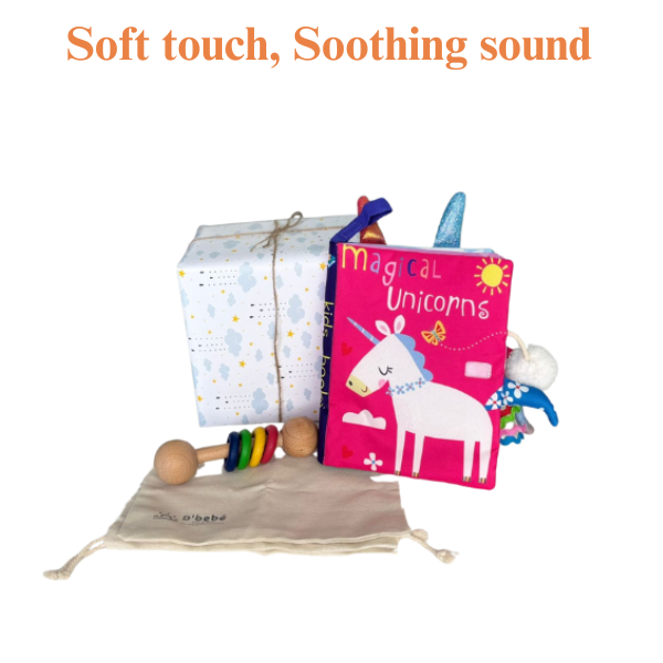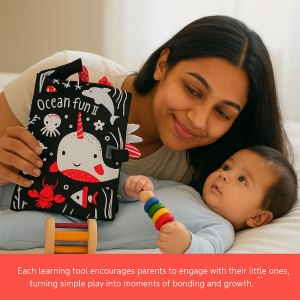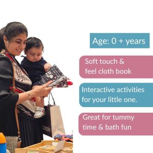 Each baby cloth book tells a gentle story through vibrant colors, soft textures, and playful illustrations that spark curiosity and sensory discovery. Thoughtfully designed cloth books for babies, made from safe, washable fabrics with soft crinkle sounds, invite your little one to touch, feel, and observe. Each page supports visual focus, fine motor skills, and early recognition .