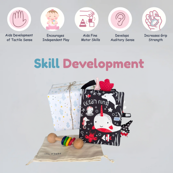 Give your baby the gentlest and most meaningful start with D’bebe’s My First Senses Montessori Box, a thoughtfully designed set of mind development toys for the earliest months of discovery. Inspired by the Montessori philosophy, each element nurtures curiosity, sensory awareness, and joyful connection — helping your little one explore the world safely and naturally.