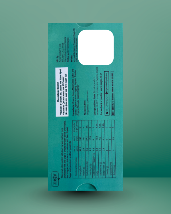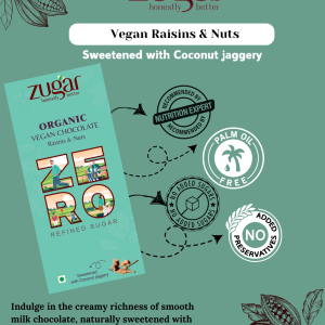 COCOA SOLIDS, MILK SOLIDS. ORGANIC COCONUT JAGGERY, RAISINS, ALMONDS, CASHEW