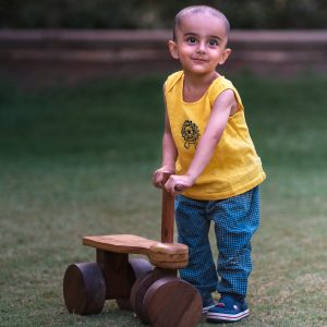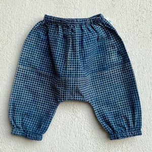 1 x jhabla top: 100% organic cotton sleeveless top with envelope neck for hassle-free wearing. Handblock printed with azo-free colours. 1 x pants: 100% organic cotton. Handblock printed indigo checks pants by traditional Ajrakh artisans. Elasticated waistband and bottom hem. Part of our Zoo Treat collection. Conscious of minimising waste, the set is packed in a reusable muslin bag ready for gifting.