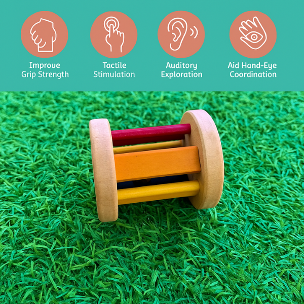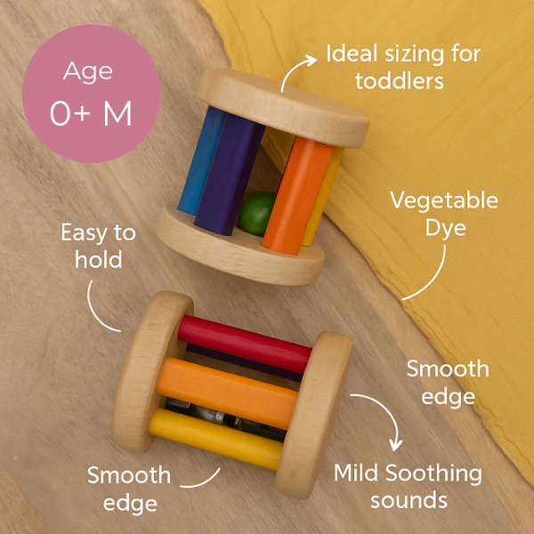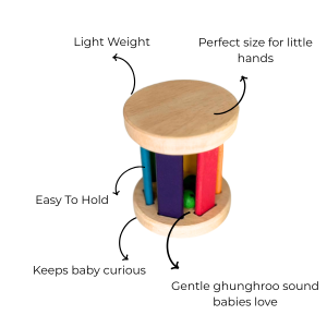 From the first joyful roll to endless baby babble concerts, the D’bebé Wooden Colorful Roller Rattle is your little one’s VIP ticket to sensory fun!