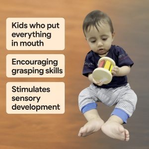Our Wooden Educational Rattle is thoughtfully designed to support your baby’s early growth and development. As little hands reach for and grasp the rattle, it naturally strengthens hand-eye coordination.